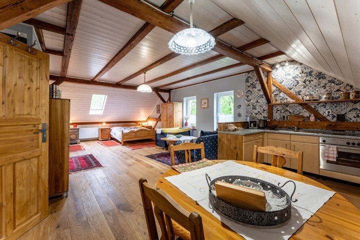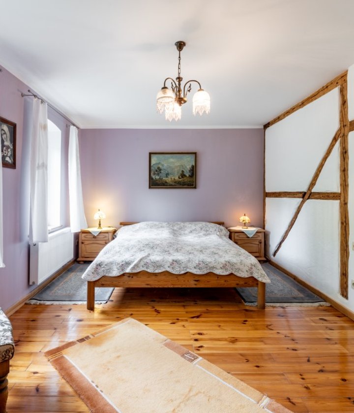Ten przytulny dom wakacyjny oferuje 4 komfortowe kwatery, każda z aneksem kuchennym, łazienką i sypialnią. Idealny dla rodzin lub grupy przyjaciół, obiekt ten zapewnia spokojne i relaksujące otoczenie, z dala od miejskiego zgiełku. Goście mogą cieszyć się pięknymi widokami na okoliczną przyrodę, spędzać czas na świeżym powietrzu, wędrować po pobliskim lesie znajdującym się na terenie obiektu lub po prostu odpoczywać na tarasie, delektując się ciszą i spokojem. Ziemia Obiecana to miejsce, gdzie można odciąć się od codziennych trosk i nacieszyć się harmonią natury.